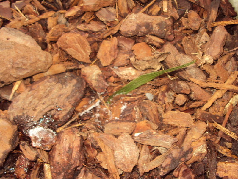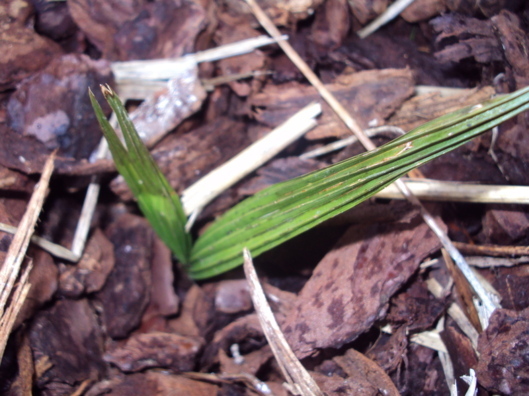 De Trachyzaailingen hebben enkel een dikke laag bladeren als bescherming gehad en die zien er op het eerste gezicht nog mooi groen uit zonder al te veel schade. Die hebben hun vuurdoop keurig doorstaan en dat zouden wel eens sterke exemplaren kunnen worden.