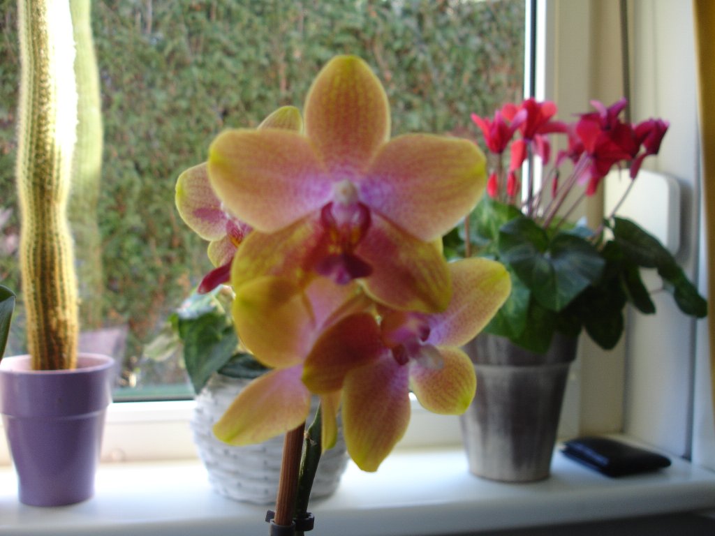 djoeke schreef:Niet draaien als ze in bloei staan anders gaan de bloemen terug naar het licht willen groeien en draaien ze zichzelf de kop af .