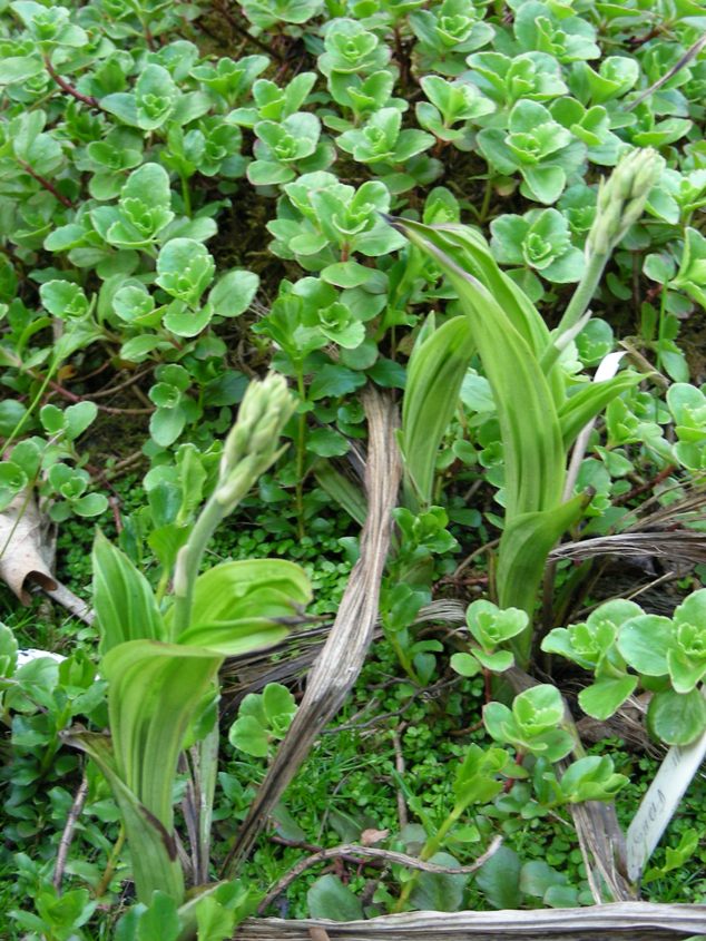 Dactylorhiza en Gymnadenia soorten zaai ik tussen de vijver/oeverplanten.