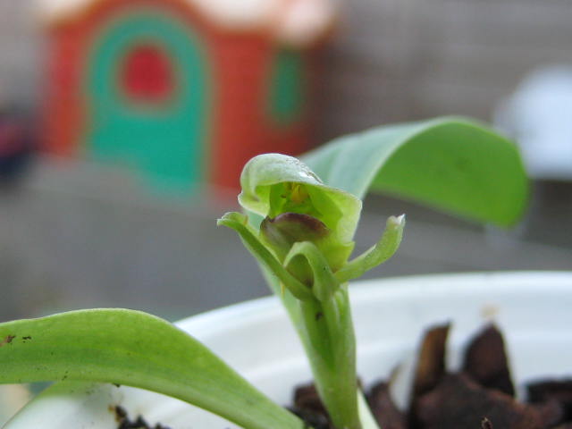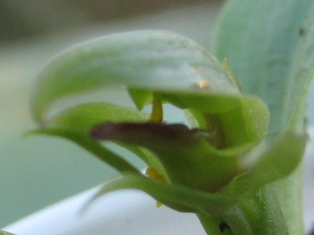 Inderdaad Arpad, de "helmvormige" bloem hebben ze gemeen, maar die knobbels op de lip zijn wel typisch Chiloglottis. Speciaal orchideetje, zoals dat wel meer is met Australische.