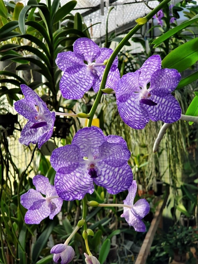 Hieronder post ik een karakteristiek fenomeen van deze Vanda. De scherpe haken aan de zijkanten van de lip. Dit in combinatie met de relatief kleine, en vooral smalle plant, is een zeer grote zekerheid van zuiverheid. Bij hybride planten reduceren de haken bijzonder snel. (Bij 75% V. coerulea stamboom is nog amper 1/4 van de haken aanwezig, kun je nagaan als het percentage nog minder is, dan zijn de haken weg, of bijna weg) De rotatie van petalen is ook een indicatie. Maar door het breder worden van de sepalen kunnen deze niet goed draaien omdat ze daarvoor geen ruimte hebben, toch doen veel bloemen dit na een zucht wind. Op de foto ook zichtbaar.