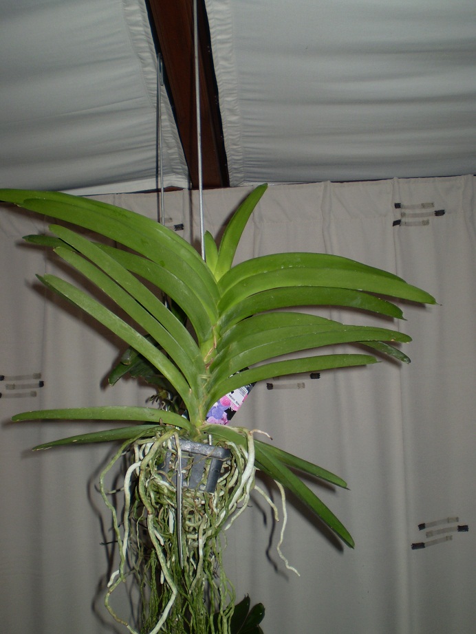 Ik heb vandaag 2 Vanda's ( Vanda Robert's Delight "Red' en 'Blue' ) gekocht die voor een spotprijsje werden verkocht. Bij 1 van de Vanda's is de helft van de wortels verdroogd maar bij beide planten zien de bladeren er gezond uit. Er was nog een Vanda R D 'Pink' maar die heb ik laten hangen omdat de bladeren aan het verrimpelen waren. ( Is volgens mij geen goed teken )