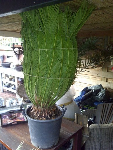 Vandaag een mooie cycas op de kop kunnen tikken. Van een ouder echtpaar die de verzorging niet meer aan konden. Voor maar 65 euro. Koopje toch.