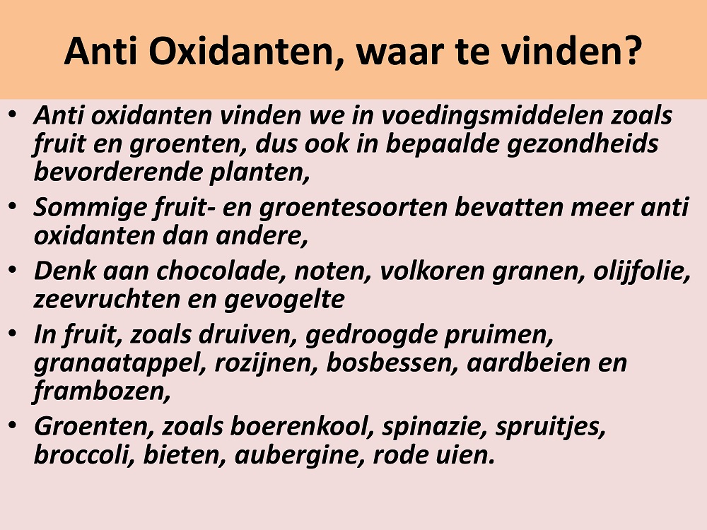 De in dit forum besproken planten heb ik genoemd: "Gezondheidsbevorderende planten". Het zijn geen medicijnen, ze helpen je gezond te blijven. Het mechanisme achter dat gezondheidsbevorderende effect zijn Anti oxidanten en adaptogenen. Hier wordt uitgelegd wat anti oxidanten zijn en hoe ze werken. Adaptogenen komen later aan de beurt.
