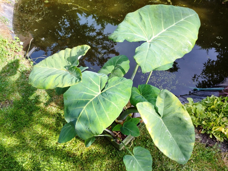 Wie Colocasia's leuk vindt zou deze ook eens moeten proberen. Soms worden ze als vijverplant aangeboden, maar of het altijd de juiste soort is?