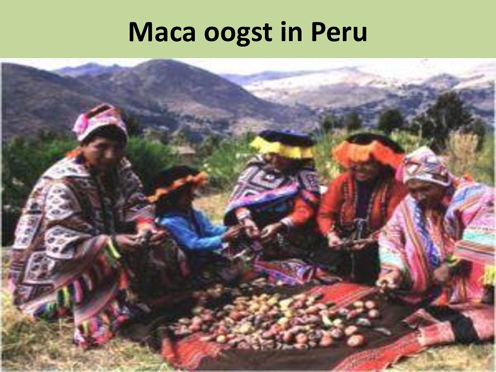Je kan zelf Maca kweken, maar zoals gezegd, de knolletjes groeien traag en blijven erg klein. Zaad kan je online bestellen via Amazon of Ebay. Je kan aangeven welke kleur Maca je wilt hebben, maar feitelijk zitten er behalve de bestelde kleur ook altijd anderen kleuren Maca tussen. Aan de verschillend gekleurde knolletjes worden verschillende eigenschappen toegeschreven. Heb je eenmaal plantjes dan heb je uiteindelijk genoeg zaad om je hele tuin vol te zetten. Het kiemt gemakkelijk. Peru heeft de uitvoer van knollen en zaden verboden vanwege de hebzucht van Chinezen die ze inmiddels ook zelf zijn gaan kweken, maar met weinig succes. Ze smokkelen ze nu via Bolivia. Chinezen hebben een obsessie met potentie.