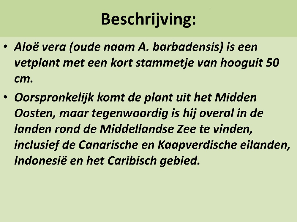 Op de Antillen spijkert men een Aloe scheut boven de voordeur. Zolang die blijft leven blijven de bewoners gezond. (Gelooft men).