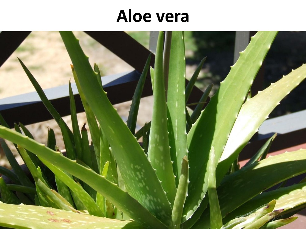 Op de afbeelding ziet u schijfjes van een Aloe blad. De gel uit het blad kan aangebracht worden op slecht genezende wonden om herstel te bevorderen.