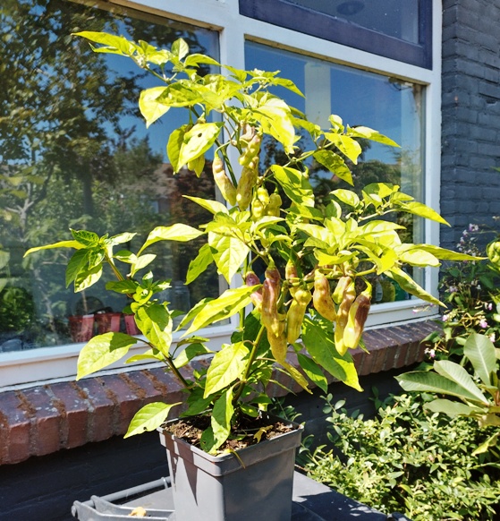 De peper is er ook in rode vorm, maar voor mij is alleen de gele de echte Madame Jeanette. Zaden kunt u kopen bij Vreeken, of gewoon uit een peper uit de winkel. Vroeg zaaien voor een vroege oogst.