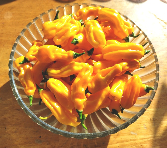 Dit is het specerijenforum, dus we hebben het hier niet over dames maar over pepers. Madame Jeanette is een zeer pittige en zeer aromatische peper afkomstig uit Suriname. Het verhaal wil dat de peper is vernoemd naar een beroemde zeer talentvolle en enthousiaste publieke dame die heel mannelijk Paramaribo in vervoering bracht met haar kunsten. De pepers zijn net zo heet als zij was.