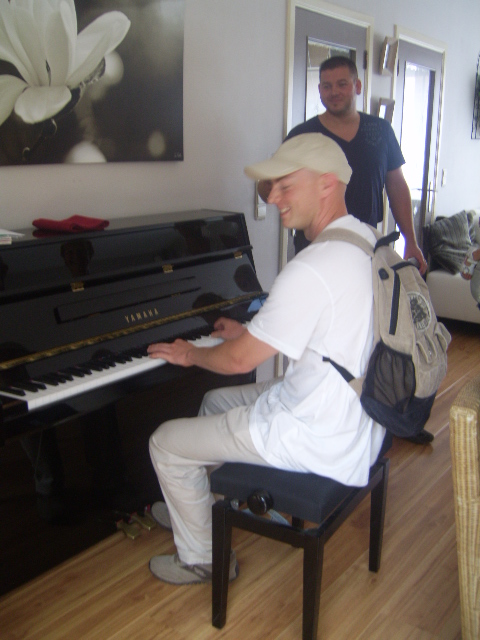 We zijn dan ook nog langs geweest bij Pepe (talithaverstreken) waar we een warme ontvangst kregen waarvoor nogmaals mijn dank Pepe ! ;) Het was leuk kennis te maken met je en je hebt al een mooie tuin gemaakt. Ik ben vooral jaloers op je boomvarens, wat zien die er prachtig uit ! :thumb_up: Ook nog eens bedankt voor het stekje van die klimplant met blauwe bloemen ;) En idd, ik schrok er ook van dat Christophe zoveel tallent heeft op de piano, was heel knap wat hij deed ! :applaus: