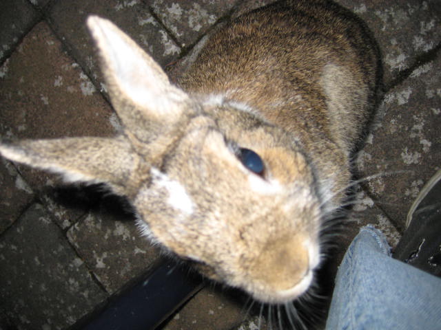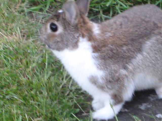 hier zijn mijn monsters een parkiet en een dwergkonijntje de als een hond los loopt