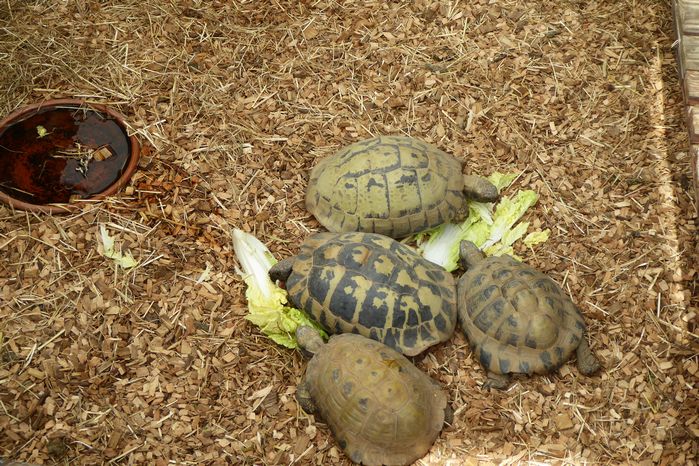 Het vrouwtje gaat veel trager en is wat gestrest wat er toe lijd dat ze minder gulzig eet dan het mannetje.