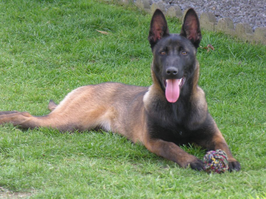 Ze is een Mechelse Herder. Samen doen we aan Gehoorzaamheids training en pakwerk .
