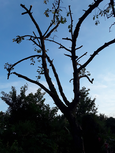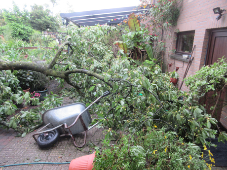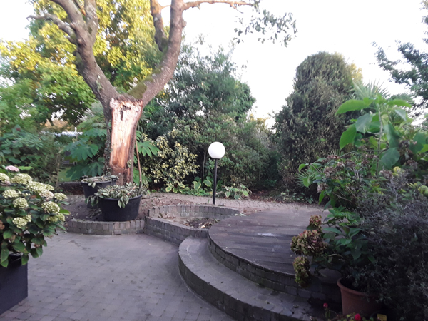 Gisteren een serieuze klop gehad, mijn tuin zal er heel wat anders gaan uitzien als deze boom weg is.