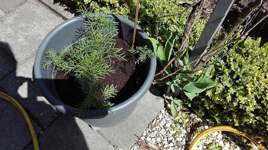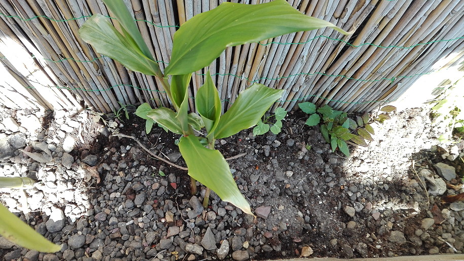 Bamboe zit in de smalle plaats ingesloten door plastiek, vandaar dat ik er nog een siergember en canna bij heb geplaatst. Misschien geef ik hem volgend jaar de hele ruimte
