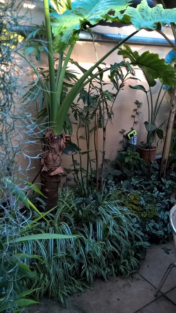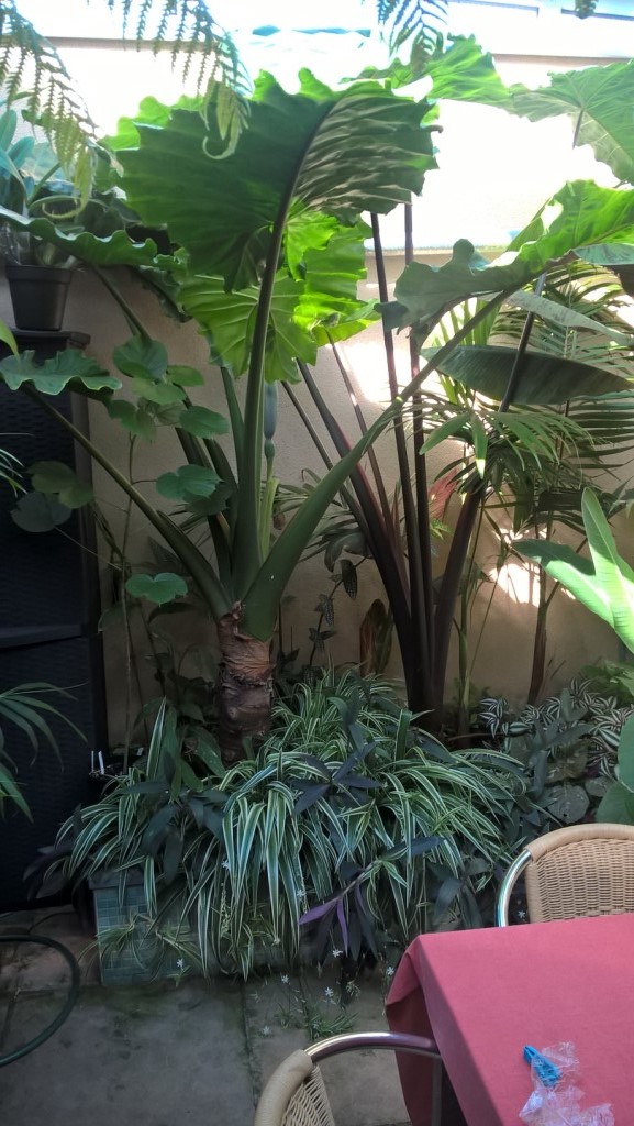 Nog even een snelle update. Bijna alles groeit als kool. Alocasia Portora is een monster van 2m hoog geworden evenals de Xanthosoma sagittifolium die ik in het voorjaar als klein plantje gekocht heb. De Phyllostachys nigra is weg want die bleef last hebben van witte vlieg. Voor de rest geen last gehad van plagen. Het eerste jaar is eigenlijk stukken beter verlopen dan ik gedacht had.