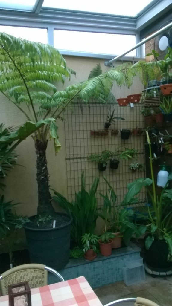 Inderdaad een mooie ruimte en zoals je het beschrijft [weinig zon] ook geschikt voor varens / boomvarens en met de vaste planten bakken zul je ook een goede luchtvochtigheid kunnen bereiken die nodig is voor deze groep ;)