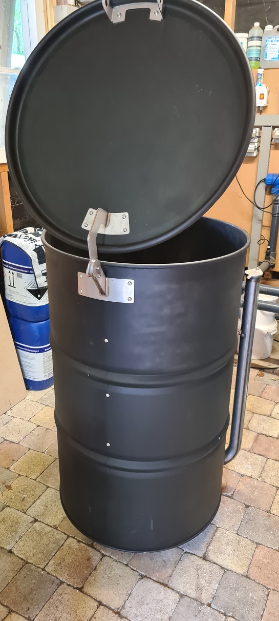 In de daarop volgende weken heb ik een zgn 'ugly drum smoker' (UDS) gebouwd uit een vat (voorheen gevuld met pindakaas...).