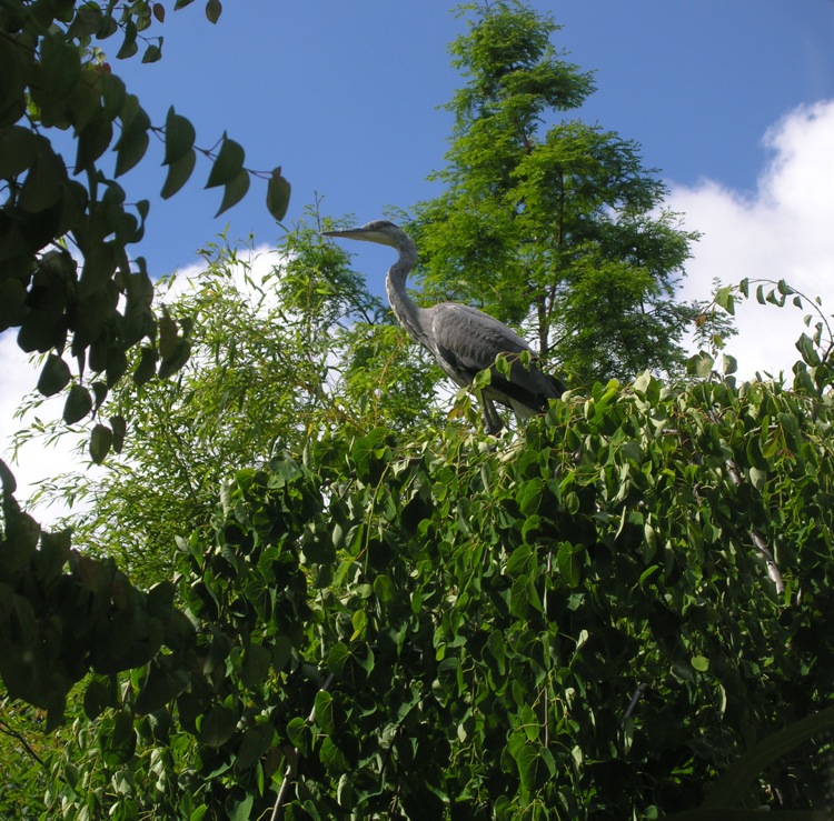 Van de week had ik er hier een vrij jonge reiger in de tuin en die probeerde in de vijver te komen .