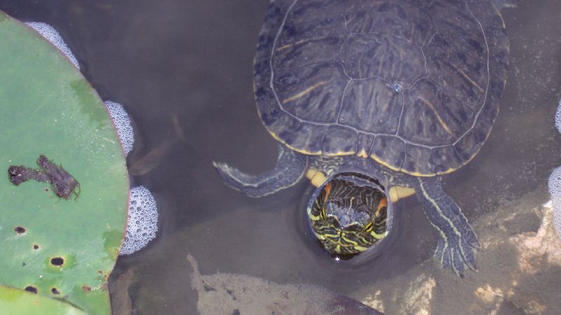 Over die waterschildpadjes, die gaan in de winter idd naar de bodem om daar hun winterslaap te doen, daar graven ze zich in in het bodemslib. In een vijver zonder bodemslib (of een laag bladeren van bomen of iets dergelijks) is het heel moeilijk voor deze beesjes om de winter door te komen en als ze de winter dan doorkomen zijn ze in het voorjaar vaak erg verzwakt of ziek.
