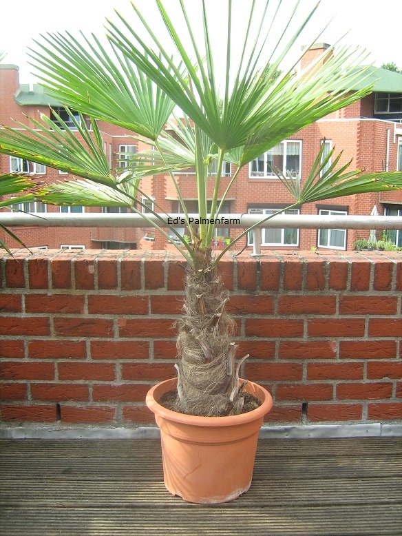 En toch denk ik dat een Trachycarpus het ook prima zal gaan doen op een dakterras. (mits je ze regelmatig water geeft) Ik heb ze zelfs op Kreta afgelopen zomer in de tuintjes bij huizen zien staan. En de Trachy's zagen er ook nog prima uit.