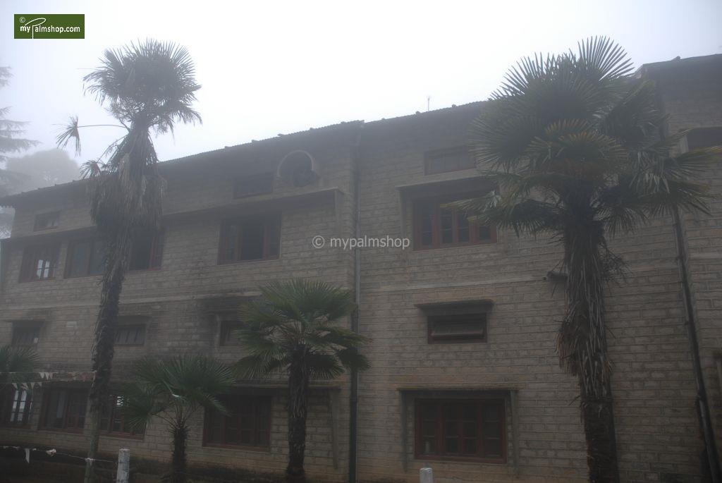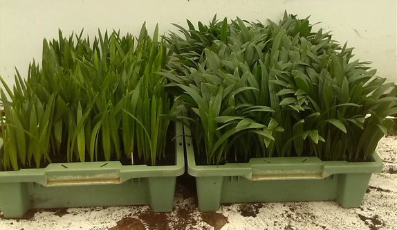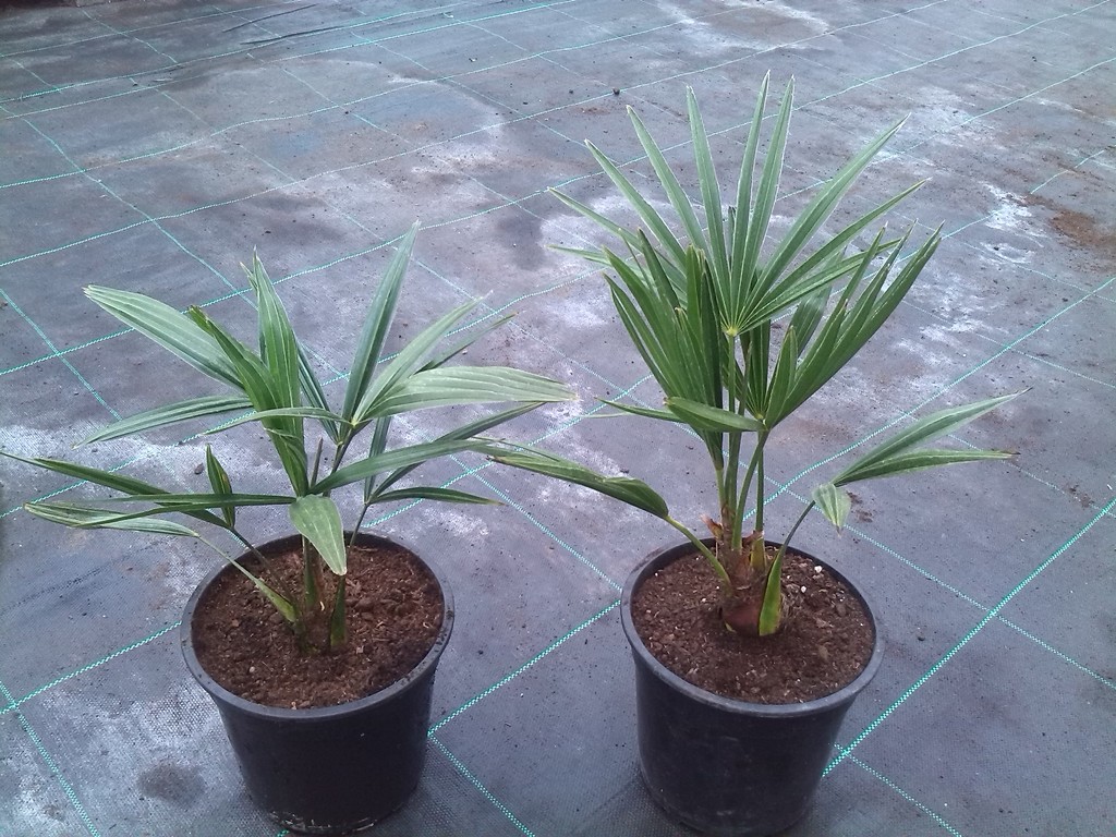 - Trachycarpus wagnerianus links, rechts nainital. Zelfde zaai datum en omstantigheden.