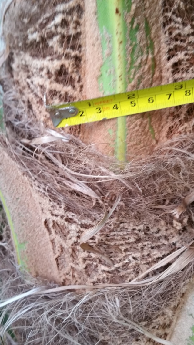 De stam hoogte is 1.60, de stam omtrek ruim 90 cm zo'n 10 cm boven de grond . De bladstelen varieren tussen 1 meter tot 1.10 lang en de bladeren zijn 90 cm tot 1 meter doorsnee.