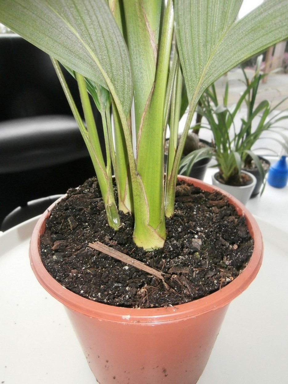 Een aantal maanden geleden ook een vergelijkbaar exemplaar gekocht. Ik had hem toen meteen verpot en sindsdien groeien de palmen als kool en dat tijdens de winter :)