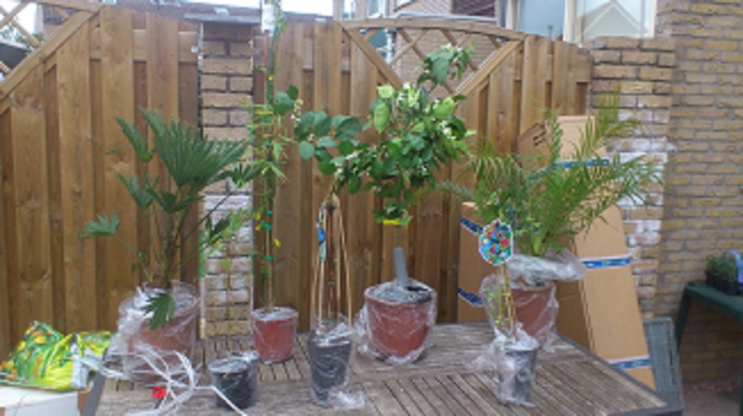 Alle planten zijn mooi binnengekomen. De potten wat kapot, dus ze zijn wel gevallen geweest vermoed ik :? , maar de planten zelf zijn nog heel. Hier en daar zitten de wortels nu boven de grond, maar morgen haal ik de potgrond en dan met de voetjes in de grond zou ik zo zeggen. :thumb_up: