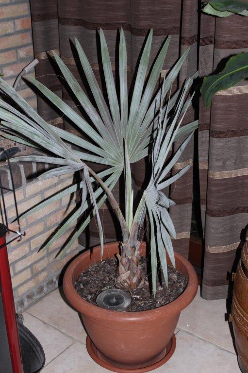 Mijn Bismarckia heb ik uit zaad opgetrokken en staat op de vensterbank in de zon het hele jaar omdat ik geen broeikas heb. Hij is al een maal om gepot en groeit nog steeds. Hij staat regelmatig helemaal droog en ik verbaas me dan ook steeds dat hij nog niet verdord is. Maar hij kan dat schijnbaar hebben. Ik denk dat als hij te nat staat dat hij dan ook problemen gaat krijgen en de wortels wegrotten. Vooral nadat ik hoor in wat voor omgeving de palm in het wild leeft.