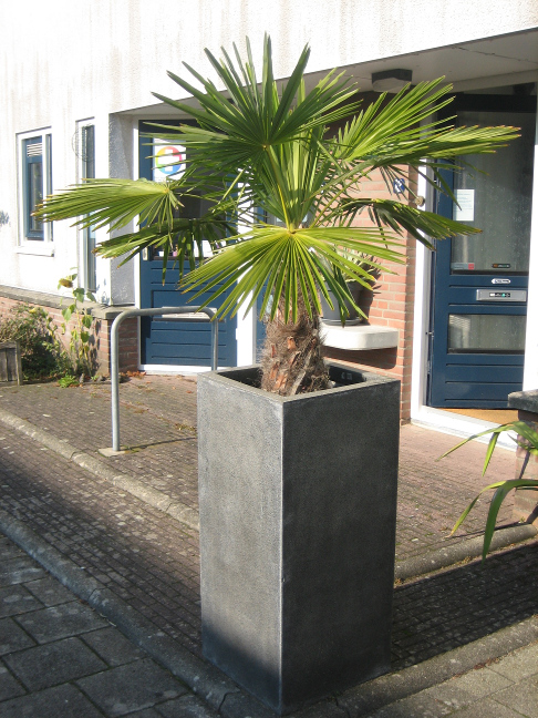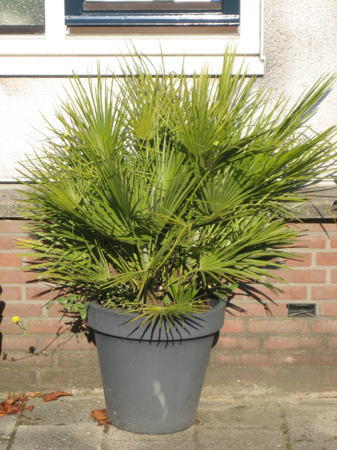 Het gaat met name om de Trachycarpus Fortunei in de grote karakteristieke pot (zie foto 1) die ik al dertig jaar had!!!