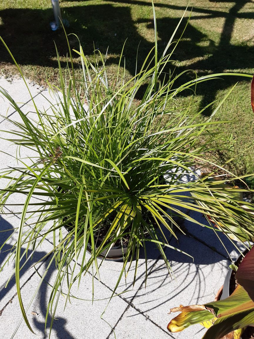 Je Chamaerops is overwoekerd met een gras. Licht de palm uit de pot en verwijder het gras met wortels en al. Plaats de palm daarna terug en vul zonodig aan met verse potgrond.