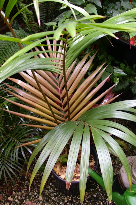 De rode variant van Howea heb ik ook nooit ergens gezien, maar eea is blijkbaar wel gedocumenteerd.