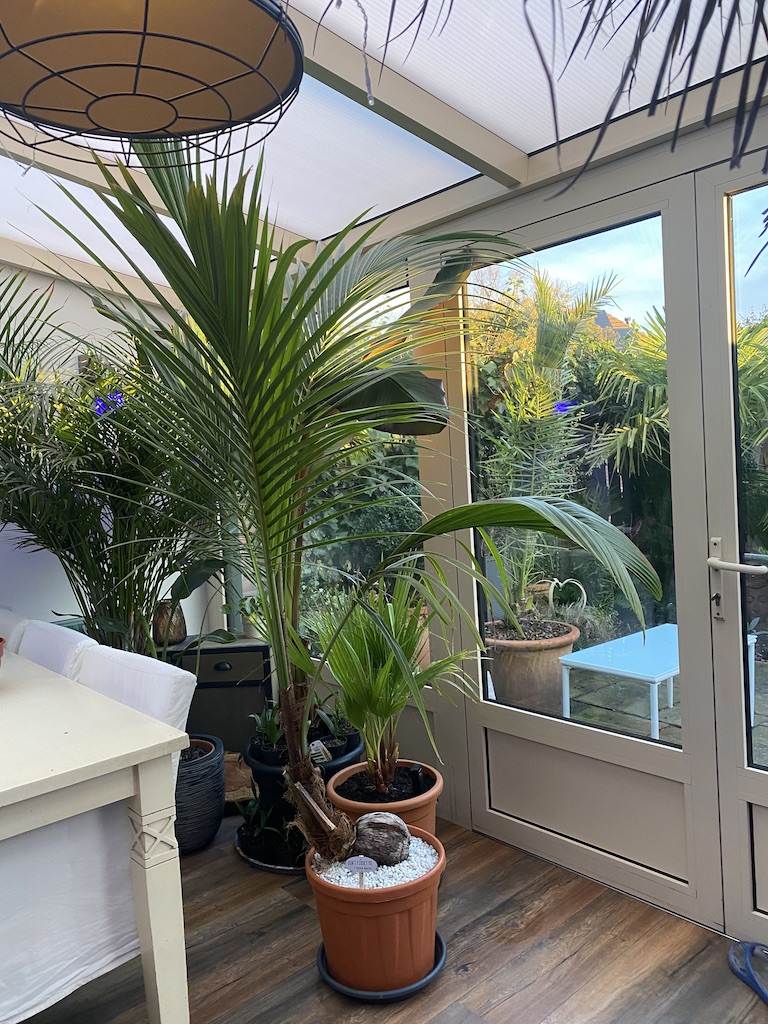 Ik zou het liefste meerdere soorten willen hebben maar ik heb er eigenlijk geen plek meer voor :roll: Tegen de winter moet er nog een hoop naar binnengehaald worden waar onder een Phoenix Roebelenii die richting de 3 meter hoogte gaat inmiddels. Wel staat nog op mijn verlanglijst een flessenpalm ofwel de Hyophorbe Lagenicaulis.