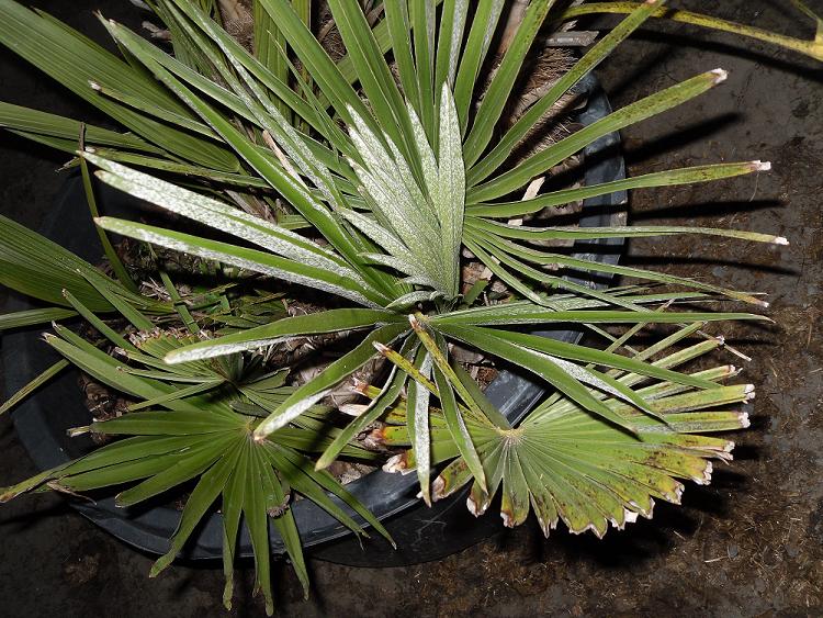 Die witte schijn komt vooral voor bij chamaeropsen die in de volle grond staan.