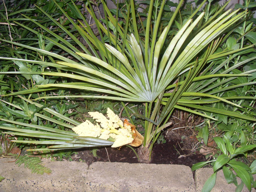 Supergaaf is dat, vooral die Trithrinax in bloei.