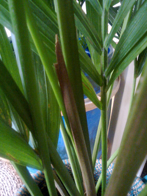 Ik heb twee Howea forsterianas die nieuwe scheuten hebben en die zijn vrij bruinig/donkerder groen vergeleken met de rest van de stammen. Ik zie ook wat bruine die bovenaan licht groen zijn en vraag me af of dit normaal is of dat die scheuten licht groen horen en bruin zijn geworden omdat ze afsterven?