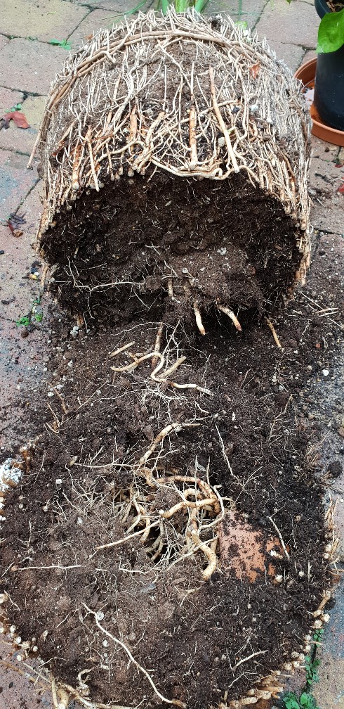 Zo kan ik de pot grootte nu dan al weer 16 jaar voor de canariensis en 4 jaar voor de Robusta in stand houden.