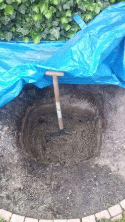 Ik heb het plantgat reeds uitgegraven, dit is ongeveer 60 cm doorsnee en 60 cm diep.