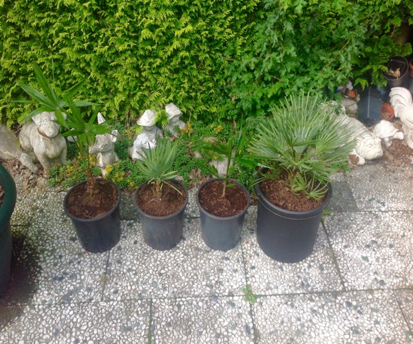 Rechts > chamaerops humilis var. cerifera (aanbieding bij der Palmenmann... Op = Op)