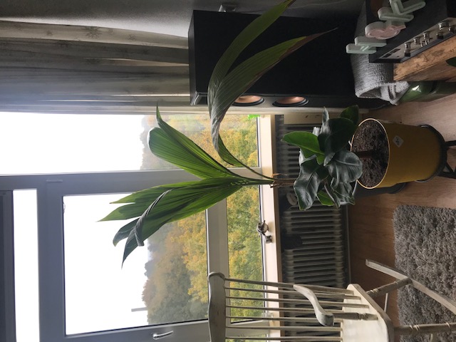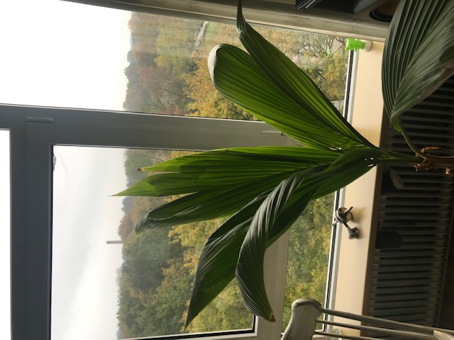En achter het raam groeit de palm naar het licht, dus probeer ik zelf dit weer recht te krijgen door de palm te draaien.