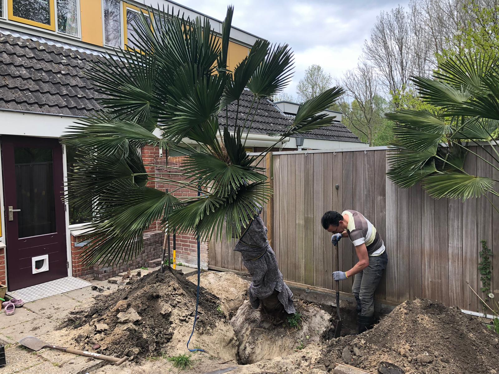 Graag maak ik jullie deelgenoot van het verplanten van een grote Trachycarpus fortunei 'Wagnerianus'.