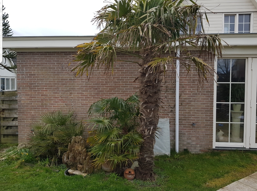 Ik heb deze palm nu ongeveer 3,5 jaar in mijn huidige voortuin staan en daarvoor ongeveer 7 jaar bij mijn vorige woning. Het uitgraven koste 1,5 uur met een graafmaching. Gelukkig heeft hij het overleefd. Ik had ook 2 Washingtonia's maar die hebben de verhuizing en de winter daarna helaas niet overleefd. Zelf zie ik niet echt dat deze Phoenix groeit maar als ik dan een foto zie waarbij ik heb net had dan is hij toch aanzienlijk groter. Elke jaar als er -4°C voorspeld word pak ik hem in met warmte lint en dubbeltjes folie. Dat is het enige moment dat ik hem vervloek. Totaal heb ik bijna 30 palmen in mijn tuin staan maar gelukkig zijn de meeste Trachy's en hebben die wat minder aandacht nodig.