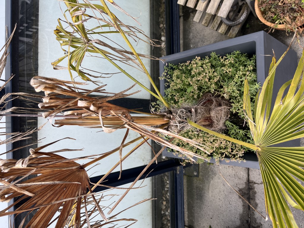 Wat moet ik nu met onze Trachycarpus, vorig jaar gekocht en deed hij het leuk.