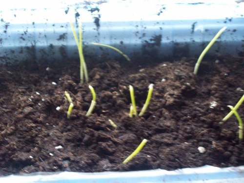 Leuk om te zien hoe de zaailingen op zoek gingen naar licht; ze staan alle kanten op ;)