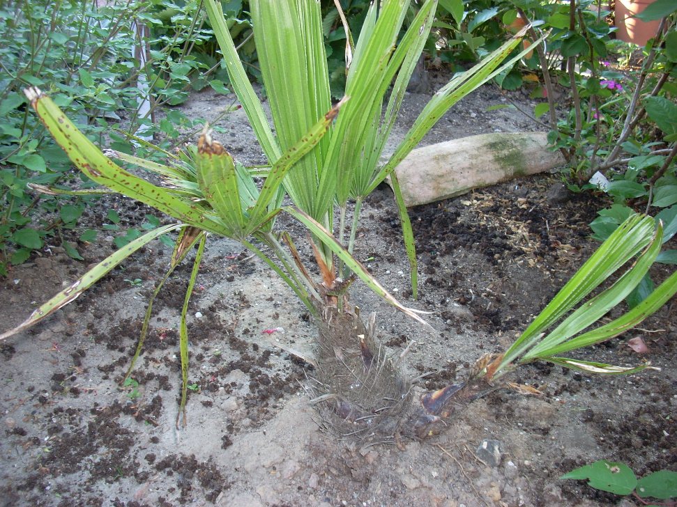De R. Hystrix van mij staat ook in de zon hele trage groei trouwens,in de winter hou ik de palm droog dmv plasticzak maar ik zorg dat er wel nog genoeg ventilatie is,mocht het streng gaan vriezen gebruik ik een oude deken die ik er nog omheen wikkel. Wat ik bij alle palmen doe is de speer droog houden en zorgen voor ventilatie via de zijkanten
