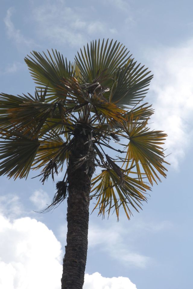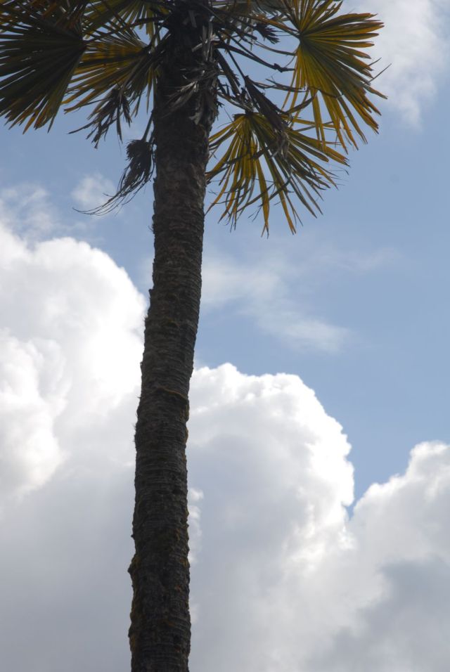 Over oudere palmen die dunnere stammen krijgen bijgaand close up foto's van beneden naar boven genomen van een palm uit het wild die zelfs door winderosie op 2350 meter hoogte stamverdunning heeft. Sta er altijd van vesteld hoe sterk die stammen zijn.