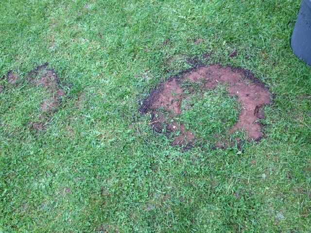 Gewoon afspoelen met de tuinslang. Zo heb je geen wortelbeschadiging. Begin er niet in te kappen of zo om het weg te krijgen.