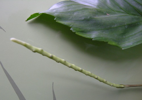 Bij rijpe mannelijke bloemen komt het stuifmeel vrij als je er tegenaan tikt.